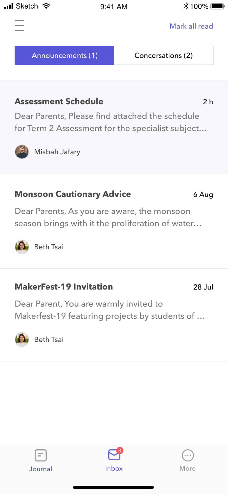 Parents are your partners in this journey of remote learning. Keep them in the loop by constantly communicating with them. You can message parents one to one, and even send class-wide and whole-school announcements to parents.