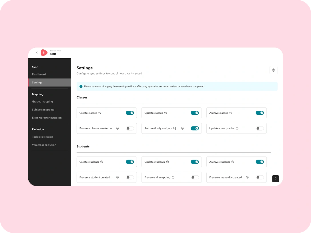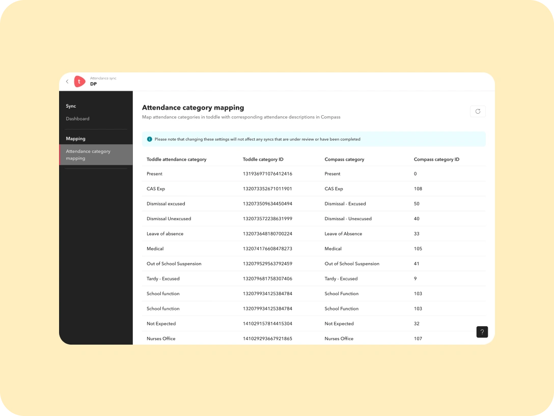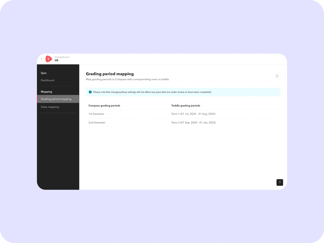 from Compass to Toddle. Schedule syncs daily or manually
