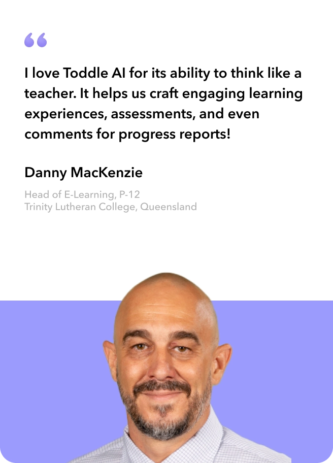 I love Toddle AI for its ability to think like a teacher. It helps us craft engaging learning experiences, assessments, and even comments for progress reports!