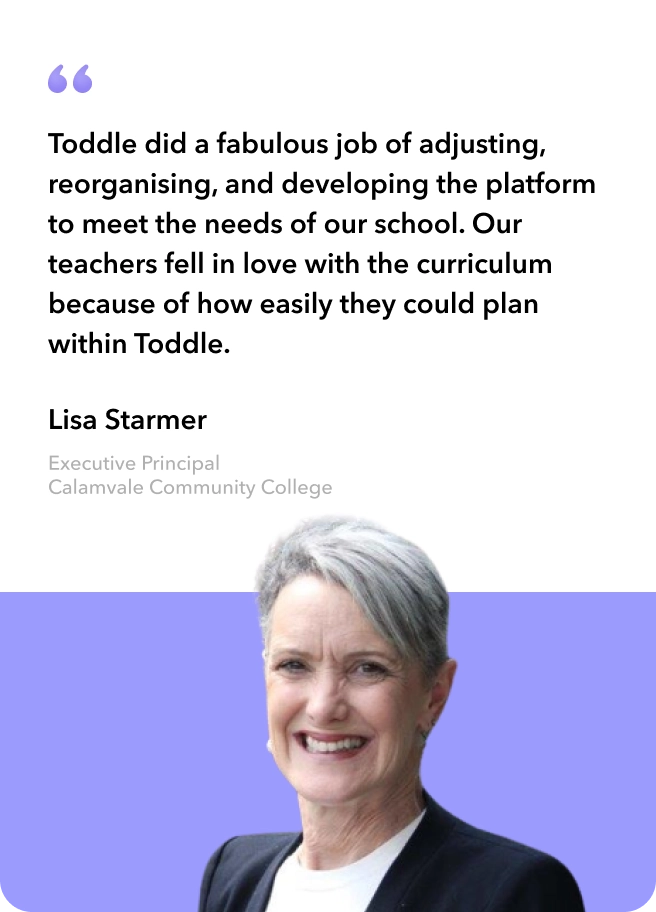Toddle did a fabulous job of adjusting, reorganising, and developing the platform to meet the needs of our school. Our teachers fell in love with the curriculum because of how easily they could plan within Toddle.