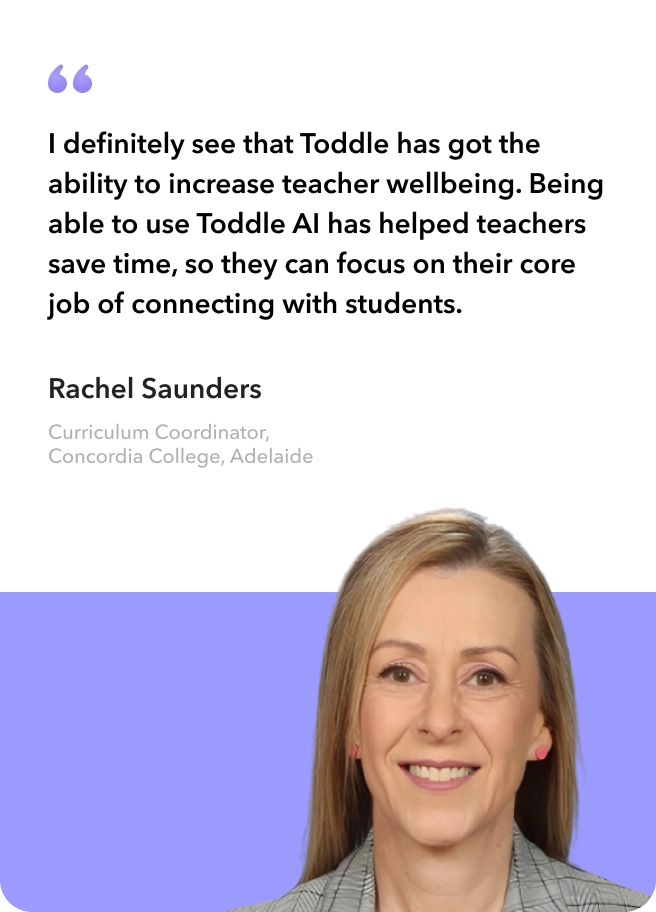 I definitely see that Toddle has got the ability to increase teacher wellbeing. Being able to use Toddle AI has helped teachers save time, so they can focus on their core job of connecting with students.