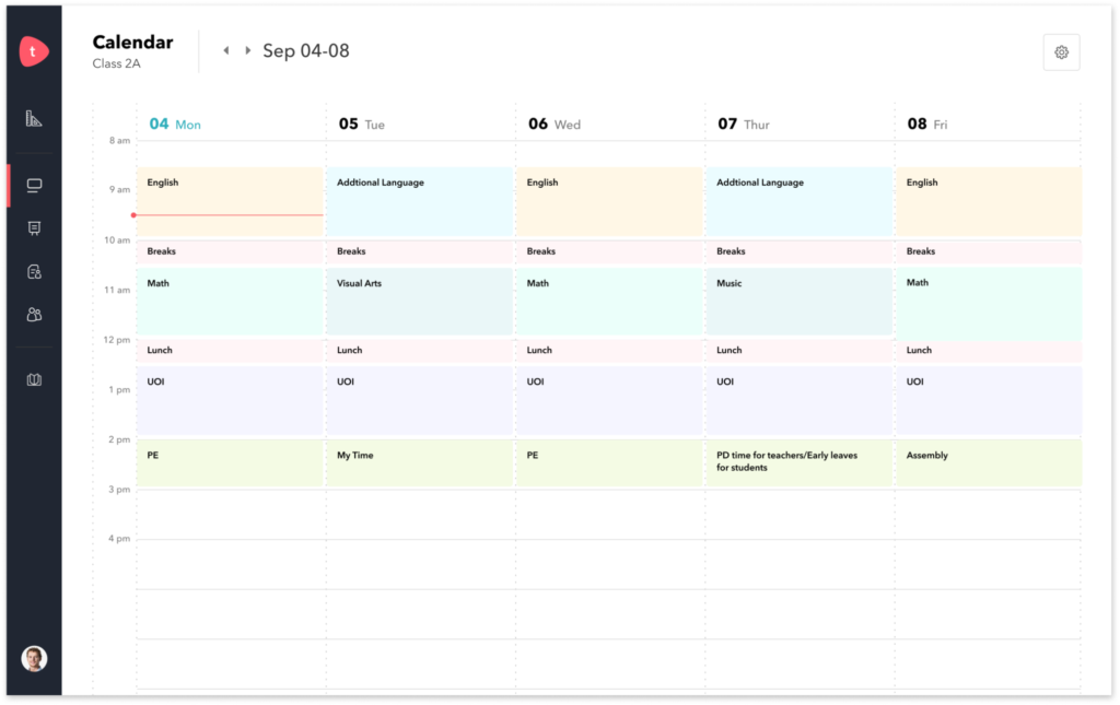 This is an example of a traditional weekly planner. In this timetable, we see a balance between subjects, there is enough time allotted for in-depth inquiry, as well as specific time for collaborative planning by teachers. On any given day, this timetable meets the IB PYP requirement by ensuring a balance between disciplines and has adequate time for inquiry. This team has also scheduled time for students to work on their passion projects during ‘My Time’, which provides yet another space for student inquiry and action.