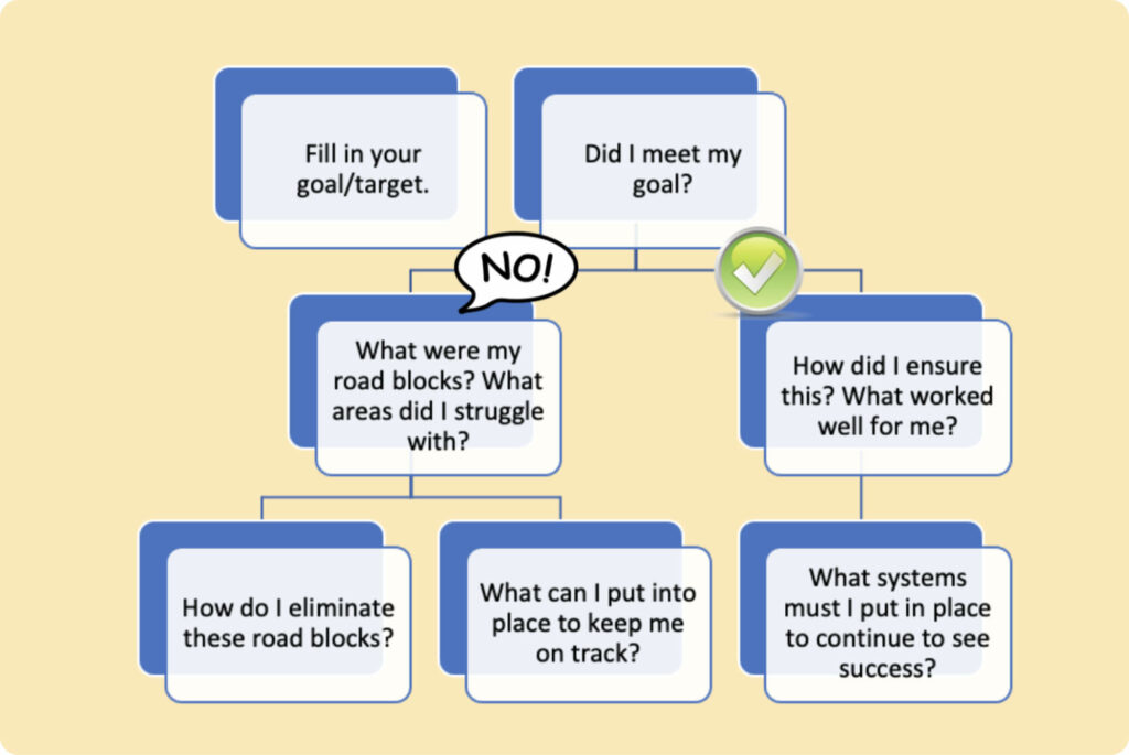• Reflect on the goal that you had for a unit or project to put systems in place which will help ensure that you are successful and always growing.