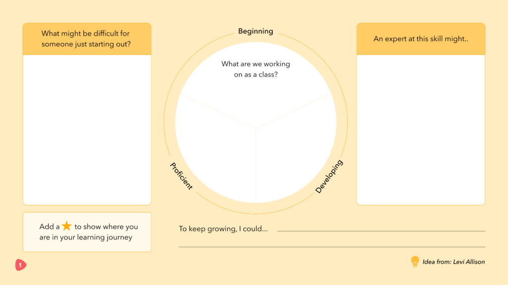 Another major shift when designing success criteria was to change how we visualised it in the classroom- from a linear model to a circular model. With a linear approach, I often found students feeling ashamed of being “beginners.” Therefore, a lot of our work this year has focused on building the confidence to recognise our own areas of growth. By shifting to a circular model, we have identified that all learners will eventually be beginners at something. I often share this learning cycle with my students and provide the central success criteria. As a class we discuss being a beginner or an expert in that skill looks like. Then, students place themselves on the circle and identify next steps.