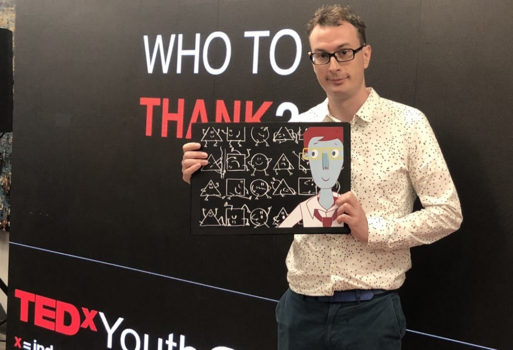 In 2019, I was invited to present at TEDxYouth Jiangshan in China. I’d been asked to speak for 12 whole minutes about a series of books I had written aimed to teach children about global issues. So instead of memorising a speech, I made a large illustrated storybook, all about a teacher who writes books on global issues. When the day came, I sat on a chair and read it to my audience. It was a hit!