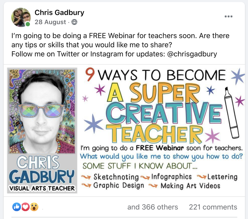 There are many ways of sharing what you are doing with the wider teaching community. You could start a blog, contribute to a podcast, share on twitter or instagram. Go to teacher events like ‘PubPD’. You could present or run a workshop or even do a webinar! Personally, I find the feedback I get from other educators to be extremely useful and the more that I share, the more I can improve on my teaching practice. When researching this webinar, I reached out to other educators to find out what they wanted to learn and received loads of valuable feedback.
