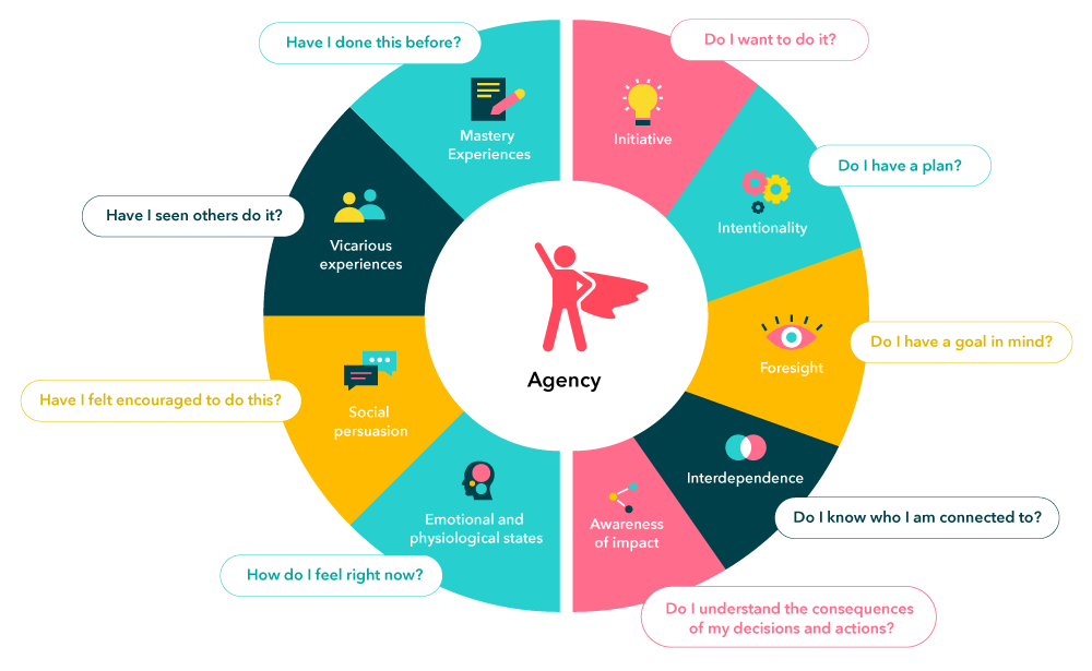 Remember Bandura told us, “To be an agent is to intentionally make things happen by what we do. To know we can act without seeking permission. To want to act when no one is watching or directing. To seek help when we know something must be done by someone with the capability. To find your tribe to do something together- many hands make light work. Proxy, Personal and Collective agency is interwoven with the spirit of action”.