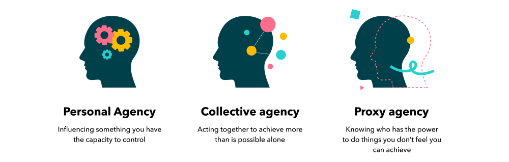 Bandura took the stance that agency doesn’t look and feel the same in all situations. He described three types of agency;