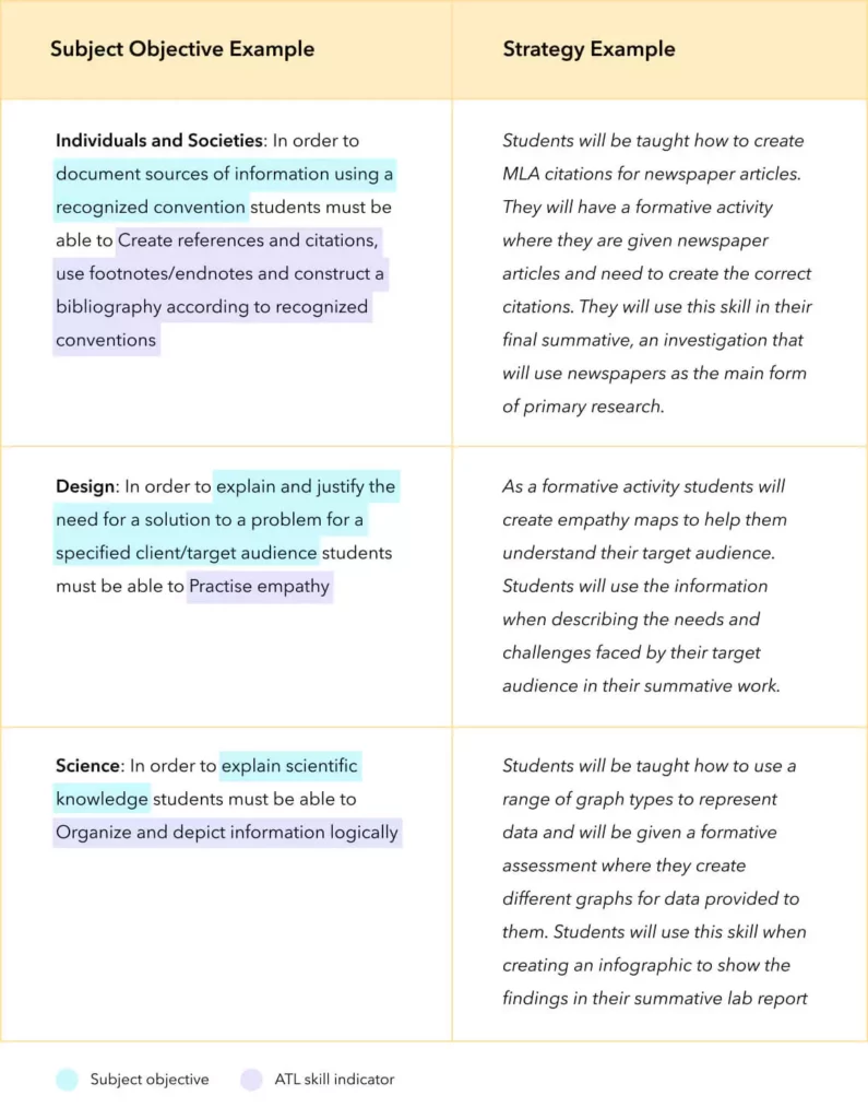 Note: When teachers carefully select an ATL skill needed to help support students meet the objective, it does not mean that students must use that skill every time they address that objective.