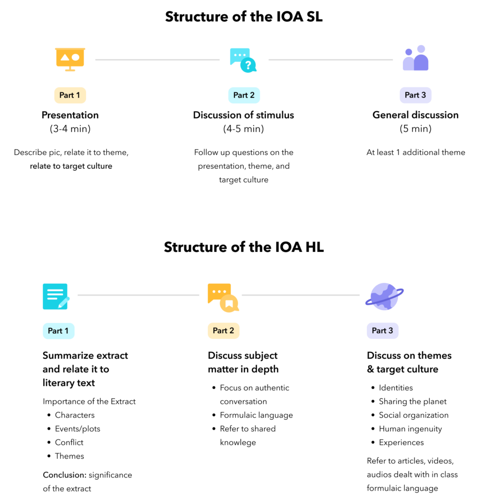 The IOA is structured into three parts. For the third part, students and teachers interact around other prescribed themes that have not previously been discussed during the IOA. Here’s a quick refresher on the structure of the IOA for your reference: