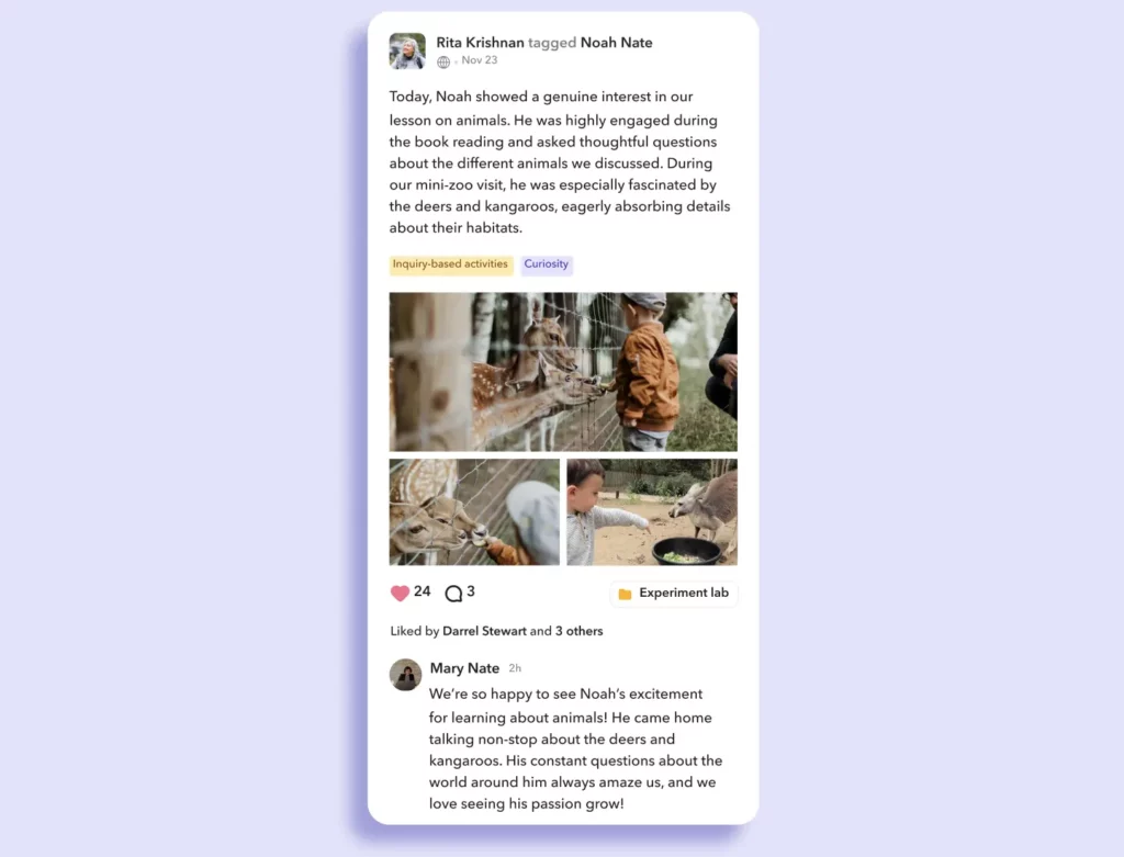 “Toddle completely changed that. Communication with parents has improved dramatically. Now, they can view demonstrations, photos, and videos of classroom activities through student portfolios, along with detailed progress reports. It’s amazing for parents to scroll through a social media-like feed and see their child’s learning journey unfold. This shift has sparked richer conversations at home, moving from ‘How was your day?’ to ‘Tell me more about the book you’re reading’ or ‘How did you feel about your presentation?’
