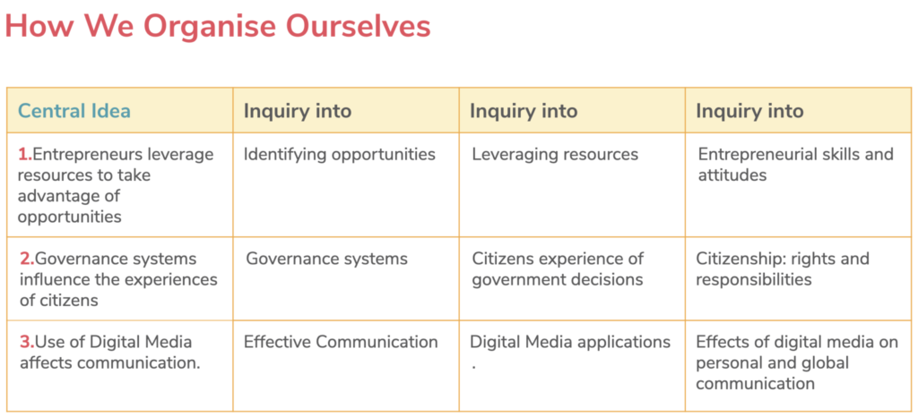 With thanks to my colleagues at KIS International School, Bangkok for their input into some of these Central Ideas. And to the three students who contributed their artwork.