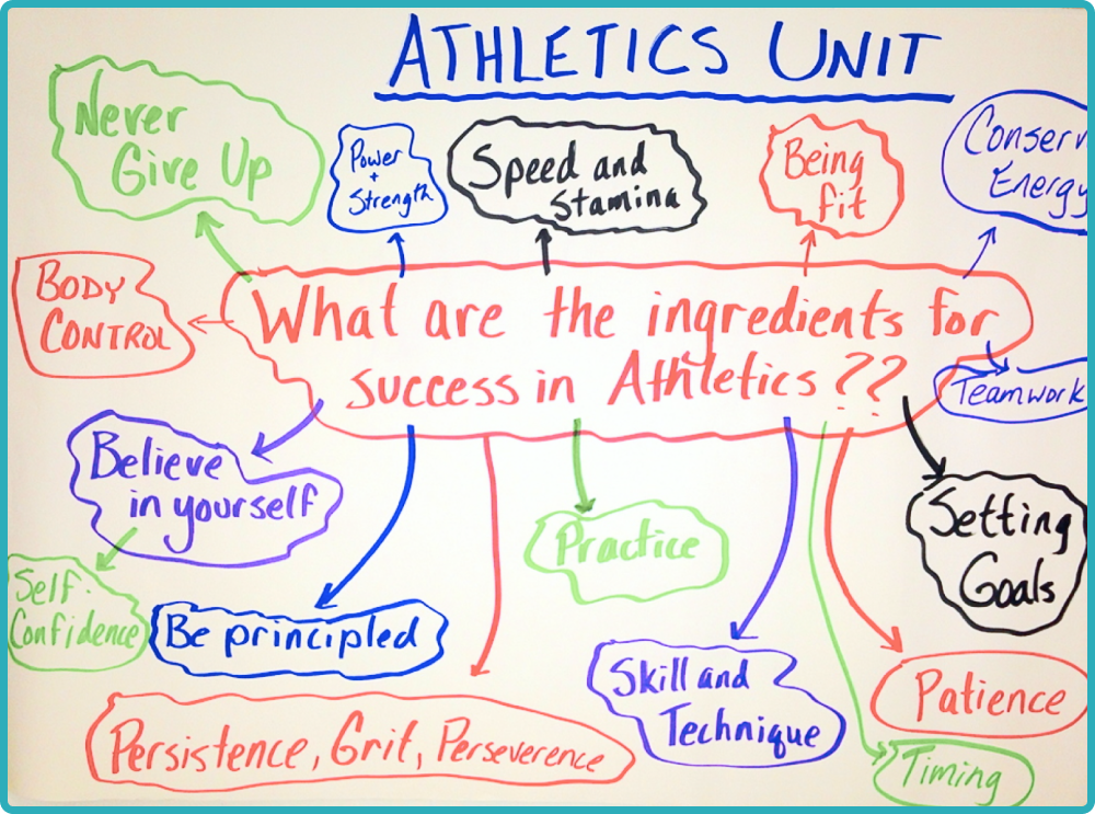 The example below is from an Athletics unit that I taught when I was teaching PE at the Nanjing International School in China. I broke the main provocation down into three separate parts in the first lesson. Each part of the provocation was used to get students thinking about what important ideas/concepts are important to focus on. My goal was to help them understand the two main ideas for the unit- personal excellence and resilience. The driving question used to unpack the big ideas/concepts was: What are the ingredients for success in Athletics? I designed a provocation that was used across different lessons in the following ways: