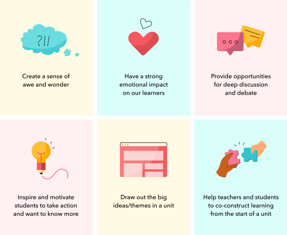 In my Toddle Talks webinar, I focus on multiple ways in which a good provocation can impact student learning, especially at the beginning of a unit. Through careful design, a rich and meaningful provocation can help to create strong emotional hooks that grab students’ attention. As well-known research John Hattie says, “We have to put students in a receptive frame of mind to help them focus on important outcomes that will guide their learning.”