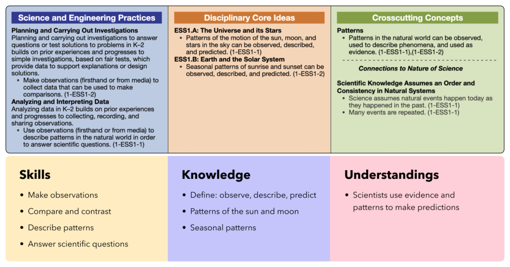 Below, you can see an example of unpacking Kindergarten Next Generation Science Standards. By breaking down the standards, it becomes easier to assess and teach the concrete knowledge, skills, and understandings.