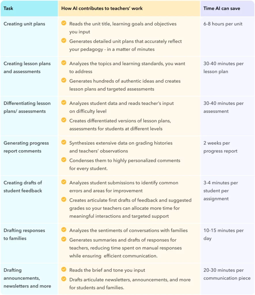 And this is only the beginning. As AI continues to advance, we will likely see more powerful capabilities that enhance virtually every aspect of our teachers’ work.