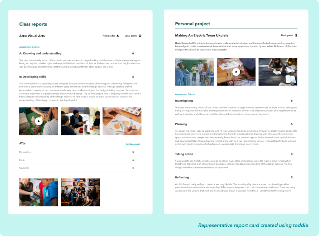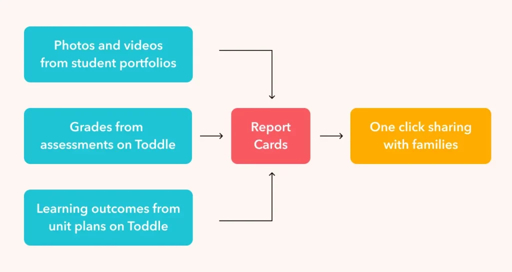 - With Toddle’s integrated platform, teachers can seamlessly link evidence collected in Student Portfolios to create media-rich Report Cards. They can use photos, videos, anecdotes and more in their Report Cards.