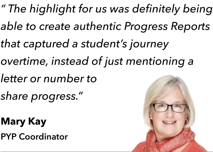 As any new PYP school can testify, the initial years are a time of taking it all in and contextualizing practices. “We wanted to find ways to adopt the PYP without overwhelming our school community. Progress Reports were a way for us to bring everyone – teachers, parents, and students – on the same page about how learning unfolds. This meant we needed flexibility in our Progress Reports”.