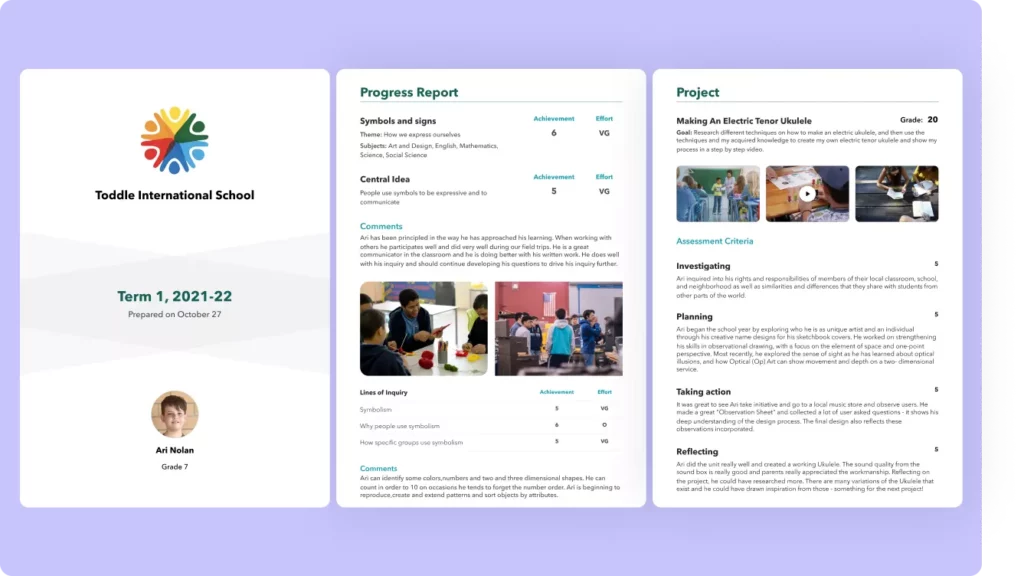 Their technology coordinator, Chiara Fornetti shares, “We’ve always thought of our educators as facilitators and co-learners, working with our students to think deeply about the world and express ideas through a multitude of learning languages. And Toddle’s portfolios and progress reports were just the right space to bring our vision to life for both our PYP and MYP programs!”