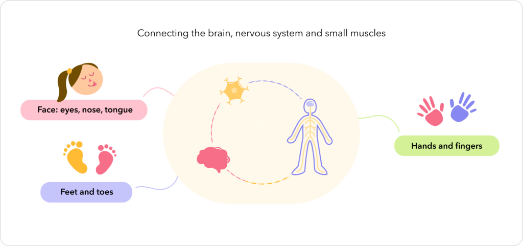 We see fine motor skills in action everyday! Many of the daily routines children engage in involve the use of fine motor skills: getting dressed, opening a lunchbox, and climbing the jungle gym. These skills involve coordinated efforts between their fingers, hands, and eyes, and can be observed in earlier stages when babies grasp a rattle and then as they eventually evolve to more complex skills like using scissors, manipulating a computer mouse, and more.