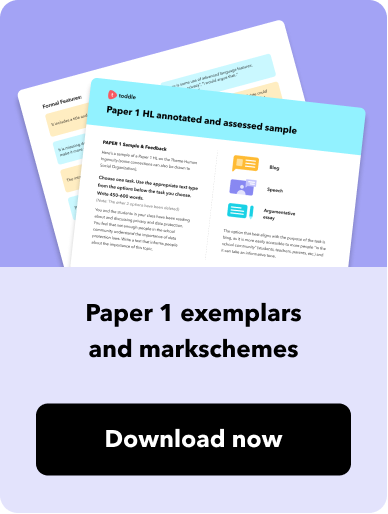 To understand how to implement the paper 1 assessment criteria, check out the exemplars and mark schemes provided here. It would be best if you marked the samples before you take a look at the feedback and final grade. Use the SL and HL rubrics provided. Once you finish marking, take a look at the annotated rubric we have provided. To reflect, ask yourself: