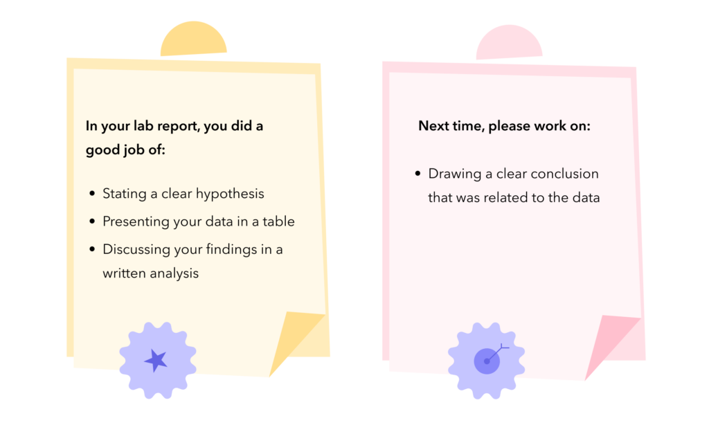 - If students self-assess or reflect to identify areas of strengths and weaknesses, give them some suggested next steps that can be incorporated into upcoming lessons.
