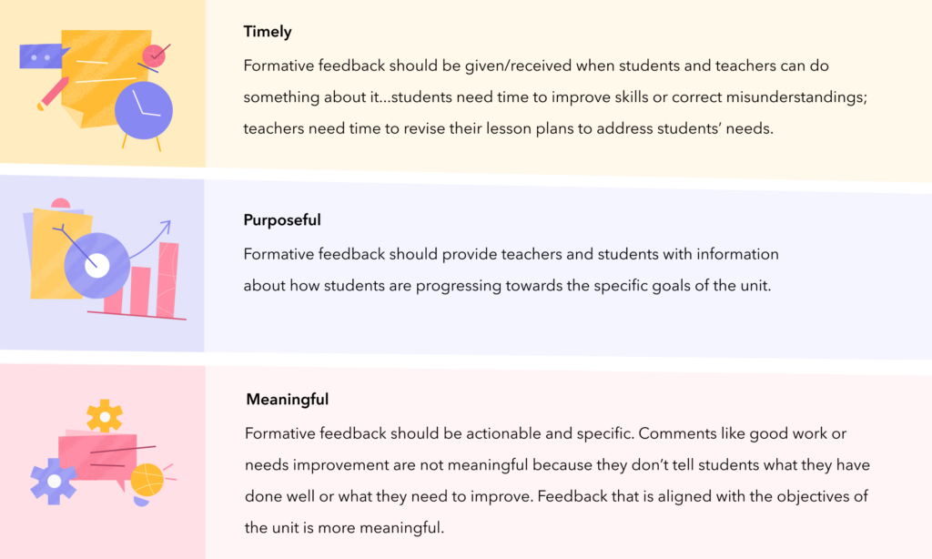 Effective formative assessment results in feedback that is timely, purposeful, and meaningful.