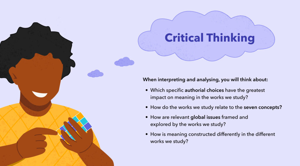 Next, you will teach your students to think critically about how meaning is constructed and how it is constructed differently in different texts. Students will learn how textual representations of important global issues can act to reinforce, reframe, and critique cultural expectations and values. By the end of the course, students should be able to recognize and evaluate how specific authorial choices and stylistic techniques shape meaning in a broad range of print-based, image-based, and multimodal text types.