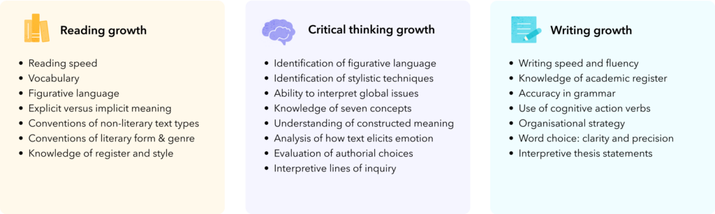 Ultimately, your students’ performance will be evaluated based on their ability to write. 60% of the course grades at HL and 70% at SL are determined by your student’s ability to draft a formal academic essay (relevant interpretive thesis, persuasive supporting evidence) under strict exam conditions. With this in mind, it’s imperative that we teach our students to write well, and fast! This goes for reading and critical thinking too.