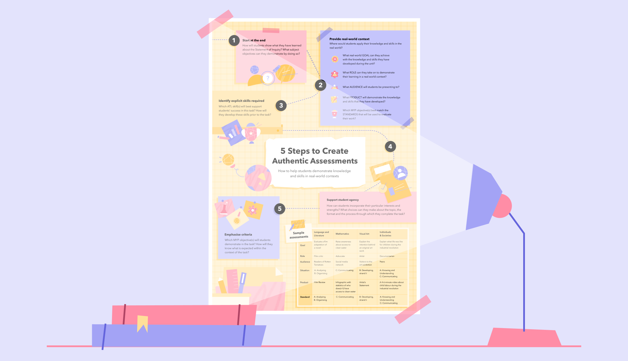 Visualize the key steps involved in designing authentic tasks with this infographic. By breaking the process down into five simple steps, this resource summarizes the most important considerations for designing authentic assessments.