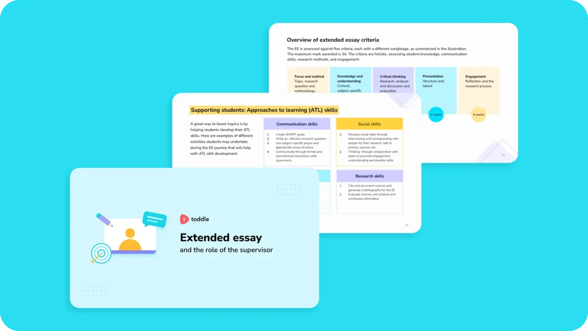 This resource has been produced independently of and not endorsed by the IB. Toddle’s resources seek to encourage sharing of perspectives and innovative ideas for classroom teaching & learning. They are not intended to be replacements for official IB guides and publications. Views and opinions expressed by the authors of these resources are personal and should not be construed as official guidance by the IB. Please seek assistance from your school’s IB coordinator and/or refer to official IB documents before implementing ideas and strategies shared within these resources in your classroom.