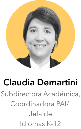 Claudia es una educadora internacional con experiencia en Medio Oriente, Europa y Asia. Además de su amplia experiencia como profesora universitaria en Estados Unidos (Miami) e Inglaterra (Bristol), Claudia es una practicante experimentada del PAI y líder escolar, especializada en la enseñanza del español como segundo idioma. Sus áreas de experiencia incluyen la evaluación, la planificación, la creatividad, el Seminario Socrático y la Taxonomía de Bloom. Le fascina la gramática cognitiva, el aprendizaje interdisciplinario y conceptual así como la comprensión a través del diseño.