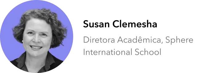 Diretora Acadêmica, Sphere International School. Susan Clemesha é bacharel em Comunicação Social pela Universidade de São Paulo e mestre em Linguística Aplicada pela PUC-SP. Atua na área da Educação Bilíngue há mais de 18 anos e é diretora acadêmica da rede Sphere International School. Suas áreas de interesse incluem educação bi/multilíngue e intercultural. Faz parte do IBEN (IB Educator Network), rede de formadores do International Baccalaureate. Integra o grupo de pesquisa Linguagem em Atividades em Contextos Escolares (LACE) e Grupo de Estudos em Educação Bilíngue (GEEB), na PUC-SP e é professora colaboradora no curso de pós-graduação em Educação Bilíngue do Instituto Singularidades.