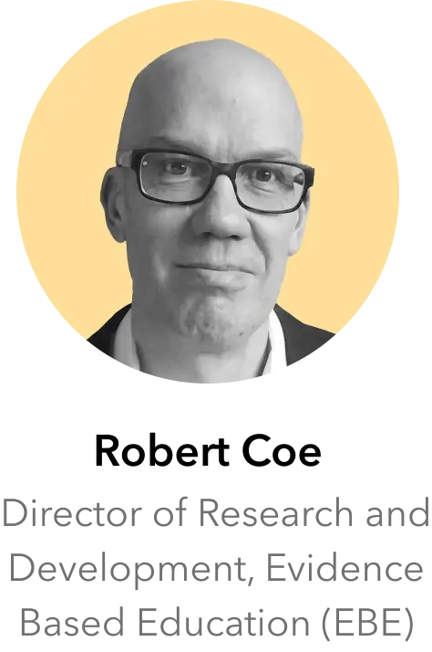 Along with leading R&D at EBE, Robert is also Senior Associate at the Education Endowment Foundation. He was previously Professor of Education and Director of the Centre for Evaluation and Monitoring (CEM) at Durham University, and before that a secondary mathematics teacher. Rob has contributed to a number of influential reports, including EBE’s Great Teaching Toolkit: Evidence Review, the Sutton Trust’s What Makes Great Teaching?, the Education Endowment Foundation’s Teaching and Learning Toolkit, and the Teacher Development Trust’s Developing Great Teaching.