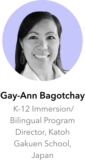 Gay-Ann currently serves as the K-12 English Bilingual/Immersion Program Director at Katoh Gakuen School. Before this, she held the role of MYP coordinator for over a decade. Starting as a DP Chemistry teacher in 2001, she has expanded her expertise to include DP Physics and MYP Sciences. Throughout her career, she has taken on diverse roles like PP coordinator and CAS coordinator. Beyond her school duties, she contributes to the IB community with experiences spanning teacher professional development, school advisory, and curriculum review.