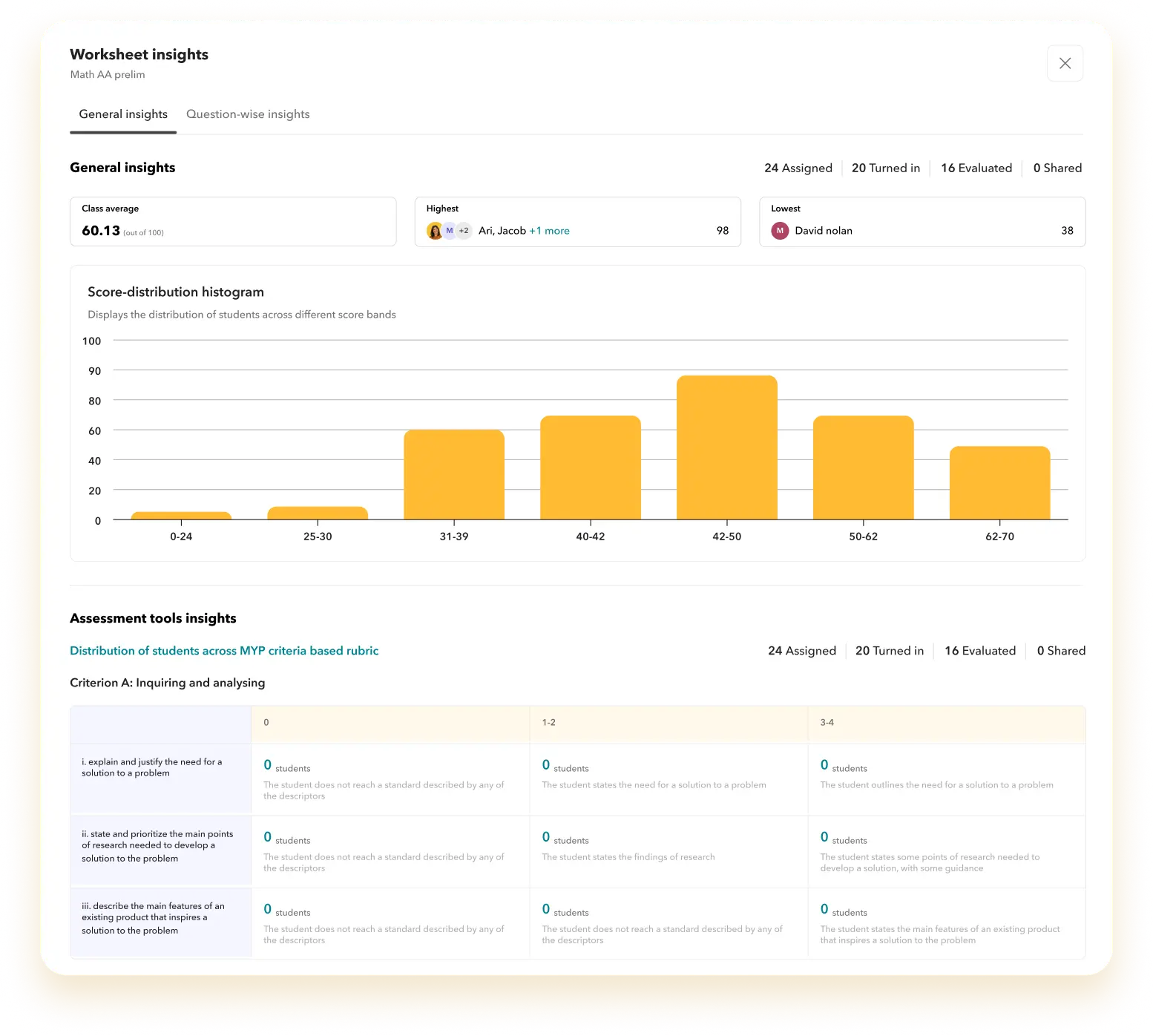 Track student progress with in-depth insights