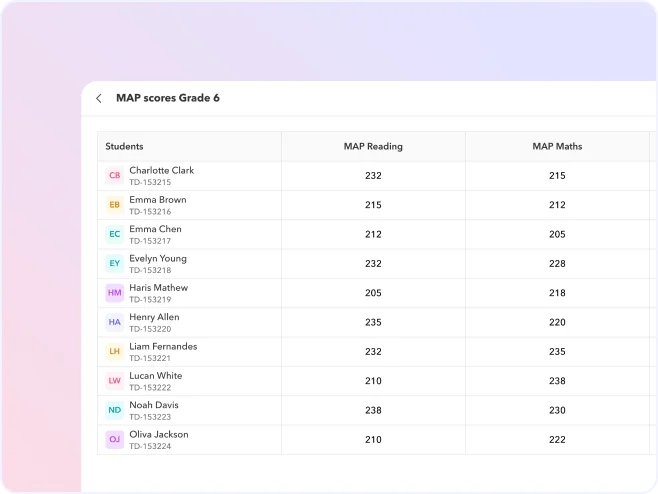Bring NAPLAN, PAT, MAP, and other external assessment data into Toddle for unified tracking and reporting.