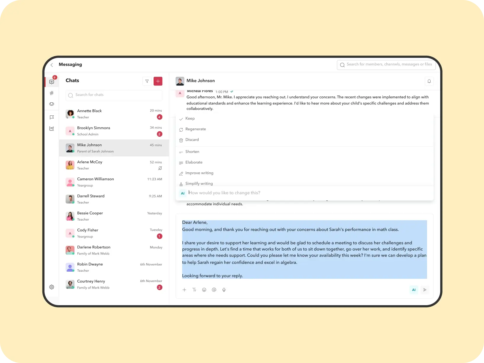 With Toddle, communication between teachers, students, and families flows seamlessly in one place. You can send 1:1 messages, create custom channels, and have conversations in over 100+ languages. And with Toddle AI built in, even the busiest school teams stay on top of things with conversation summaries, sentiment analysis, and more.