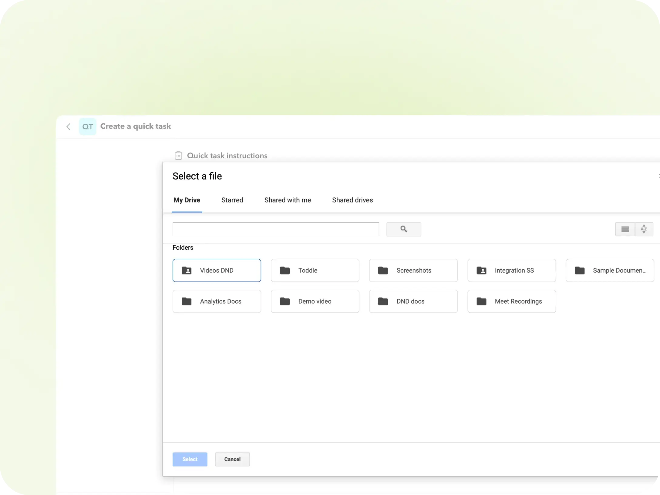Manage all your Google workflows — SSO, file uploads, submissions, and video calls — from Toddle with ease.